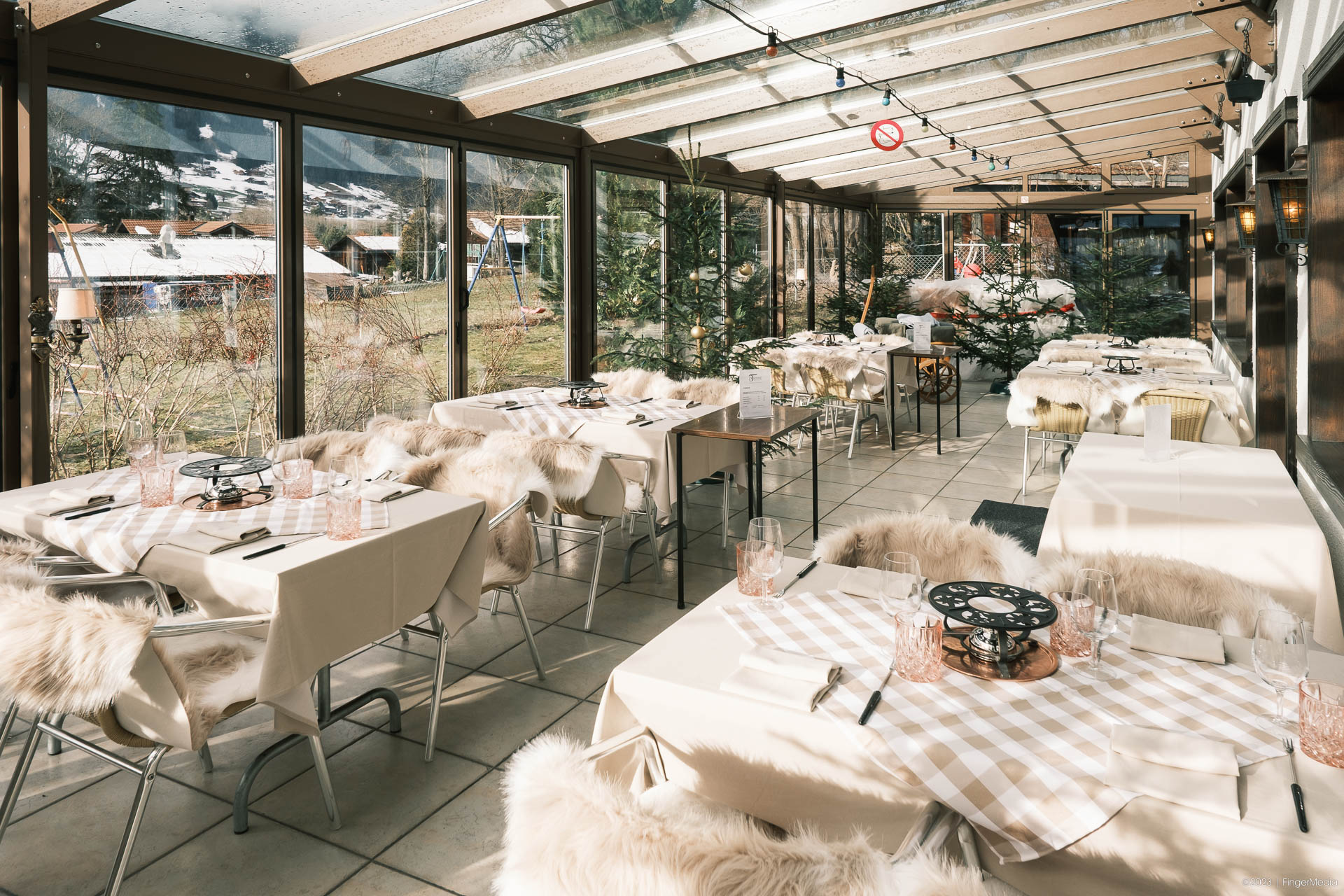 Der Wintergarten ist nicht beheizt. Kleiden Sie sich warm genug! Fondue servieren wir ausschliesslich im Wintergarten.
